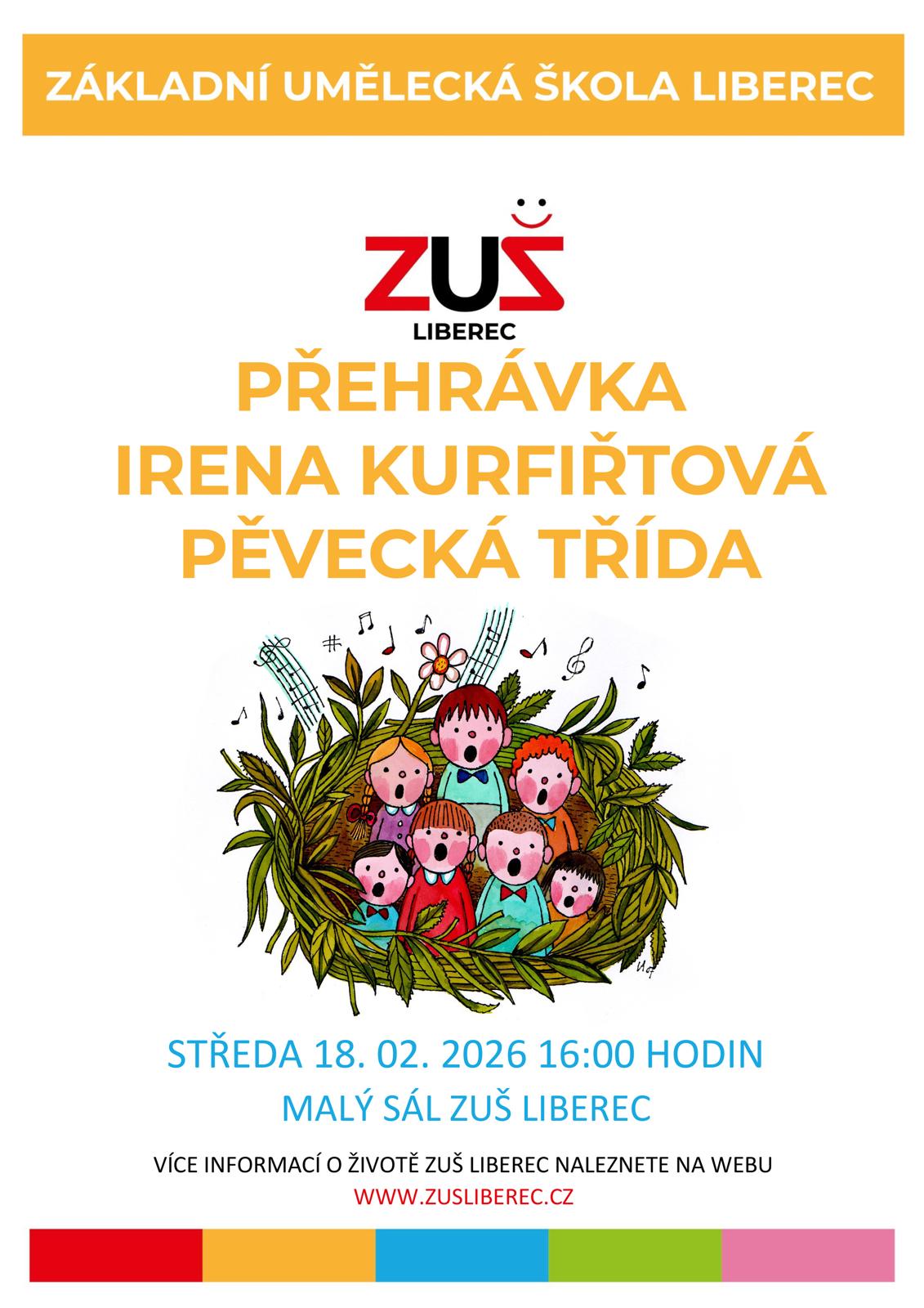 Čtvrtek 14.05.2026 7:00 – 13:00 hodin, Liberec, velký sál ZUŠpřehlíka dětských sborů mateřských škol - ve spolupráci s MŠ Beruška, Liberec, Na Pískovně 761/3
