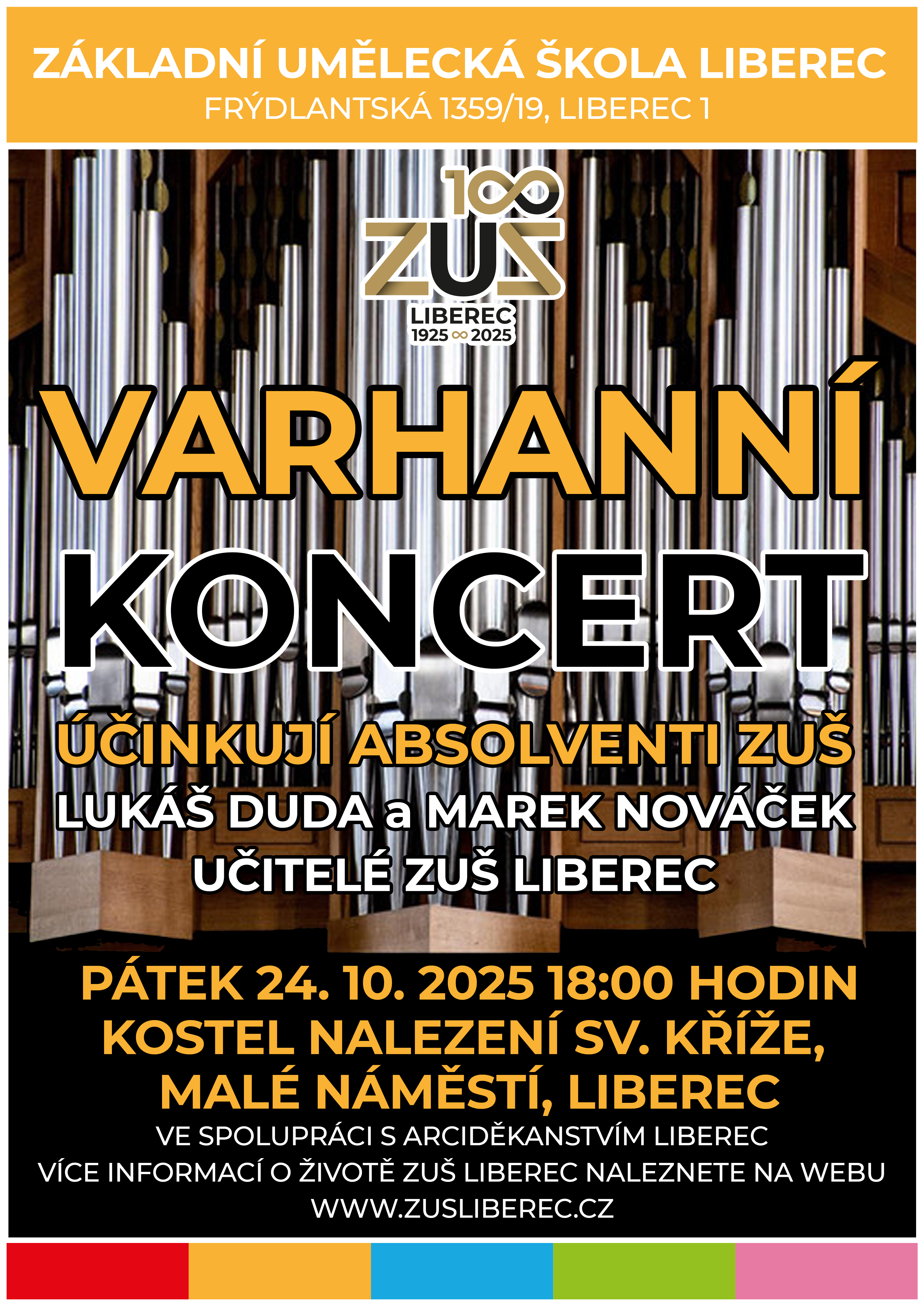 Pátek 24.10.2025 18:00 hodin, Liberec, Malé náměstí, kostel Nalezení sv. Křížeúčinkují žáci a učitelé hudebního oboru