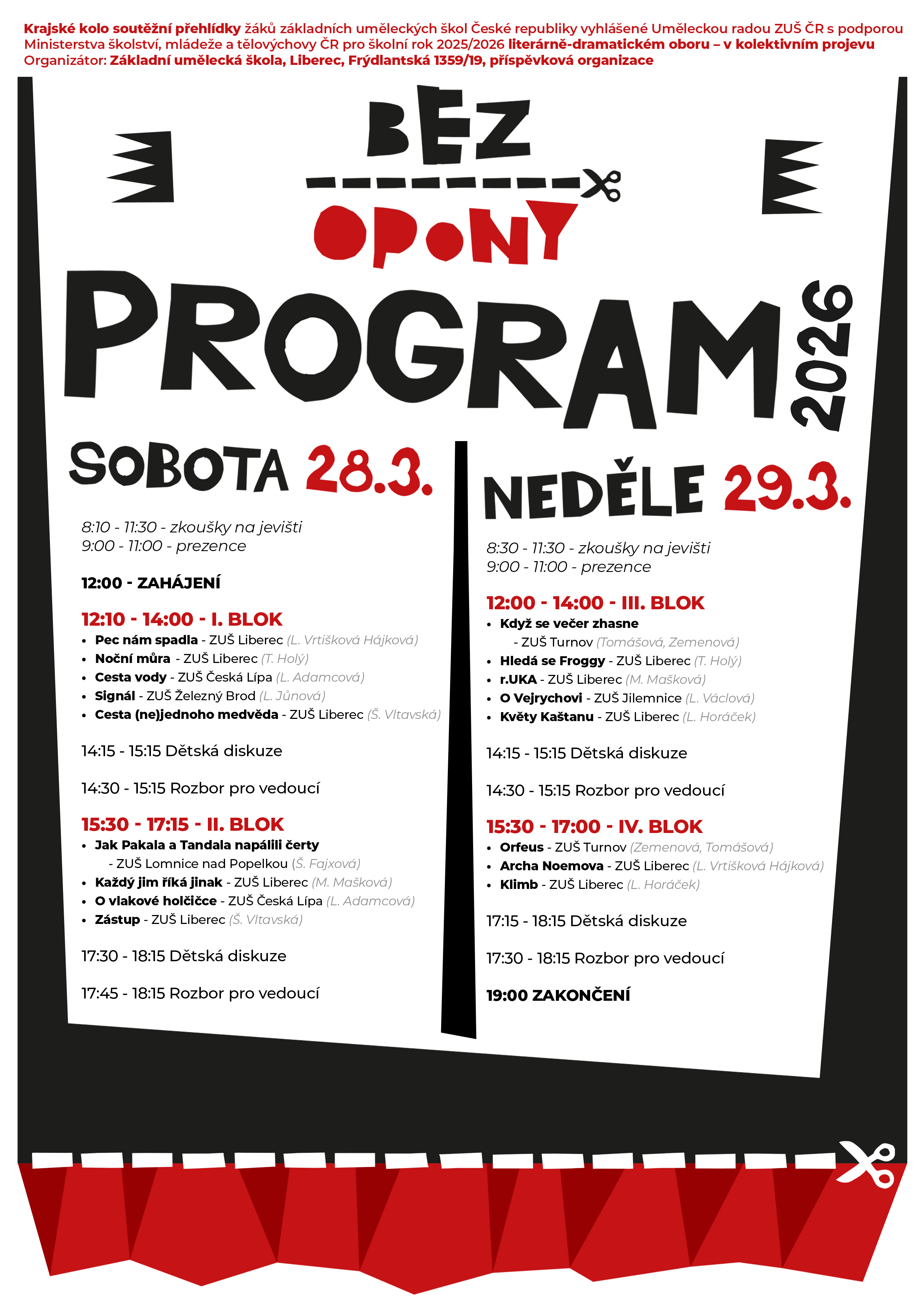 Pondělí 01.06.2026 od 1. do 5. 6. 2026, Liberec, budova ZUŠdle rozpisu do 5. 6. 2026